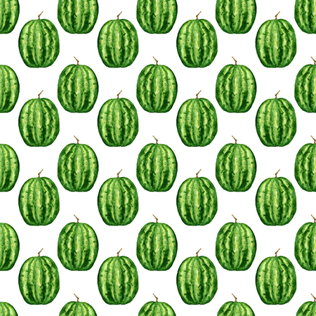 熱帯のエキゾチックなフルーツのシームレスなパターン 白い背景の上のスイカ 夏の生地 壁紙 織物印刷 水彩の手描きイラスト の写真素材 画像素材 Image